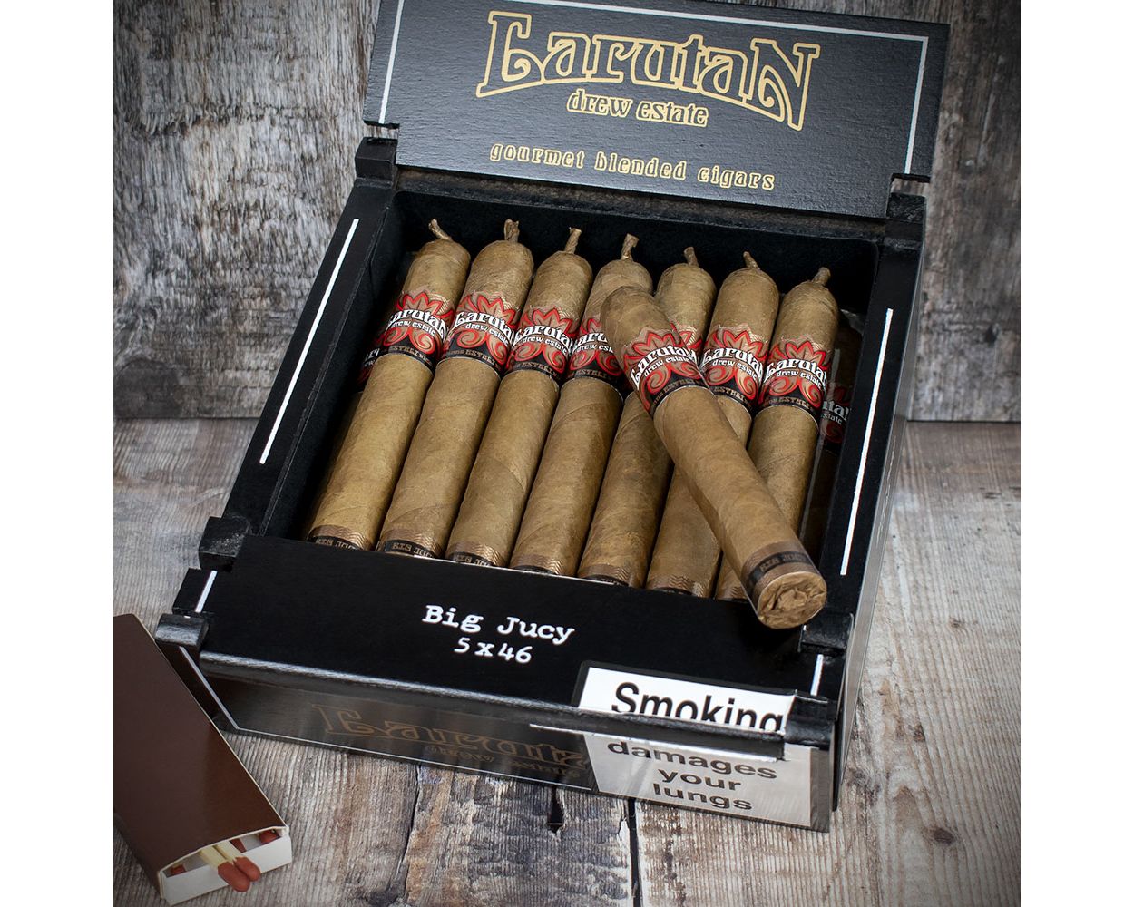 Drew Estate’s Larutan (Natural) BIG JUCY 5 X 46’s are hand made with premium aged Nicaraguan leaf, blended with exotic tobaccos from all over the world.